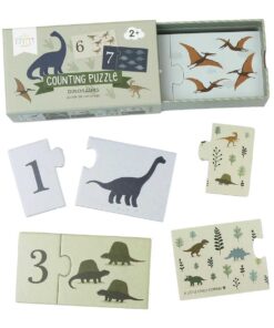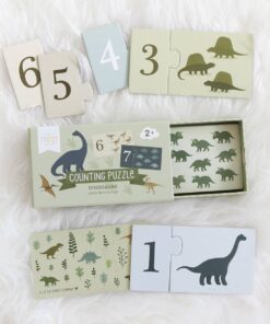 Tanulj meg számolni egytől tízig ezzel a szép dinoszaurusz mintájú fejlesztő készlettel. 10 különálló rejtvényt tartalmaz, egyik oldalán számok, a másik oldalon pedig dinók vannak, akiket meg kell számolni.