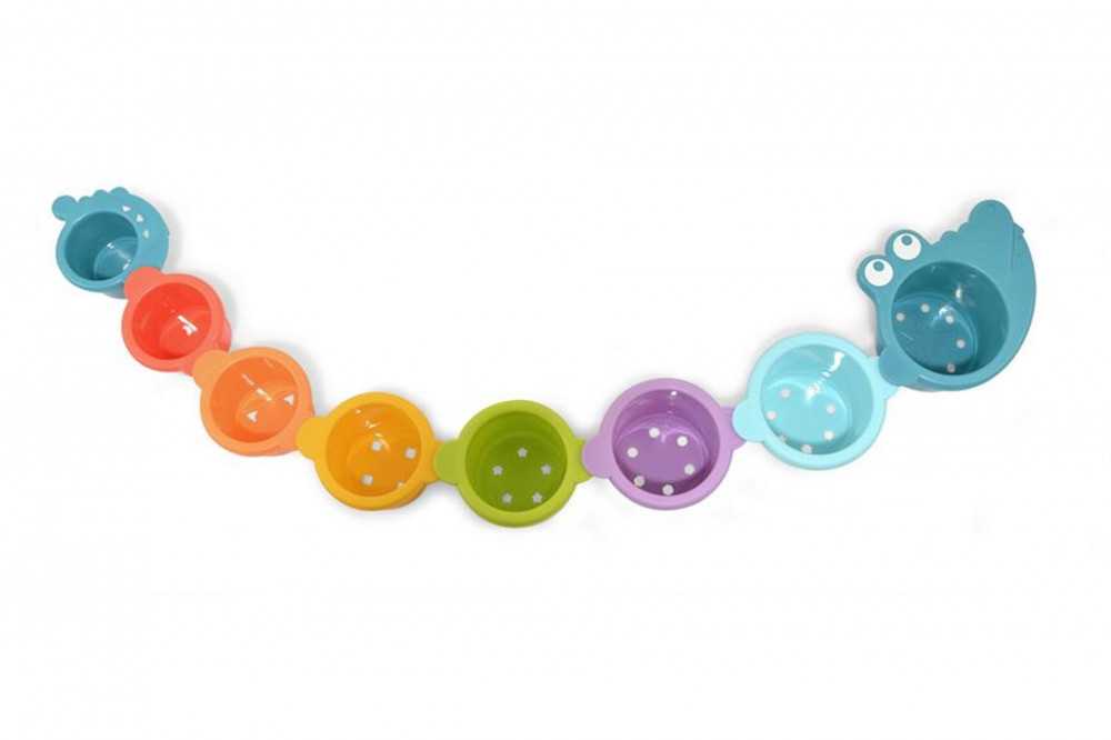 Ezek a vicces csészék segítenek, hogy a babák beleszeressenek a fürdési időbe. A játék fokozza a kíváncsiságot és meghozza a kedvet a felfedezéshez. Minden csésze alján különböző mintázatban elrendezett lyukak találhatóak, melyeken átfolyik a víz, így még érdekesebb a játék.