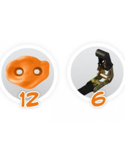 A csomagban található 6 heveder és 12 kapaszkodó, melyeket gyorsan és egyszerűen felszerelhetsz egy fa köré, hogy kalandos útvonalakat hozz létre gyermeked számára.