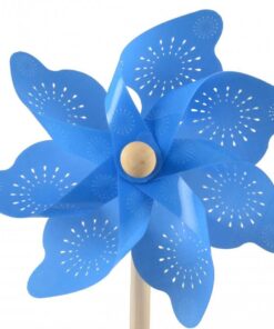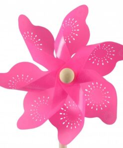 A hurkapálcára rögzített színpompás, fényes papírból készült játék a szél hatására pörögni kezd.
