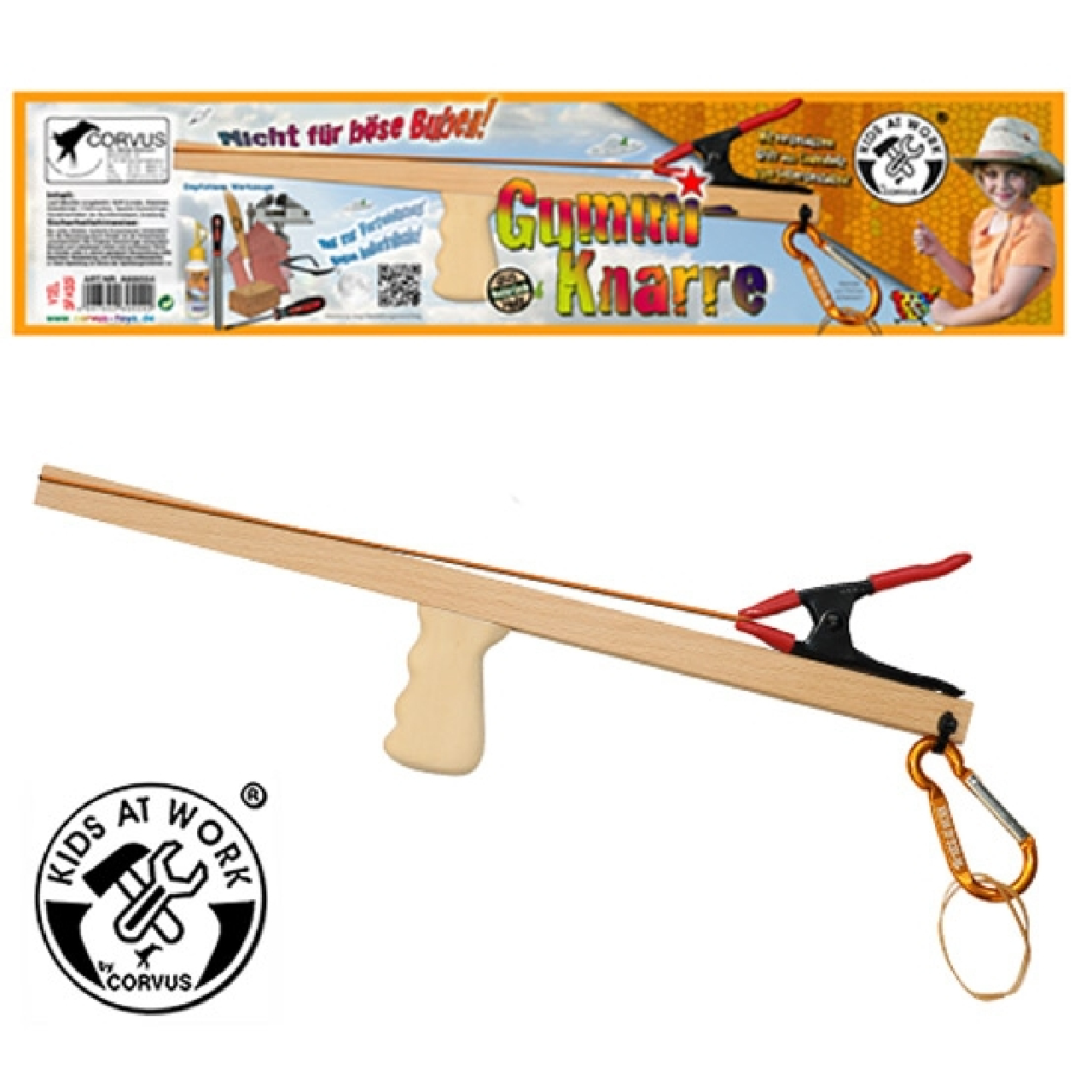 Kiválóan alkalmas célbalövésre, vagy az otthoni játékfigurák levadászására. A csomagban van 1 db bükkfa puskatest, 1 db fogórész, 1 db mini csipesz, gyorskötozők, csavarok, 1 db karabiner, és 10 db gumigyűrű. Az elkészítés közben szükséged lehet egy csavarhúzóra, faragasztóra, reszelőre, faragókésre.