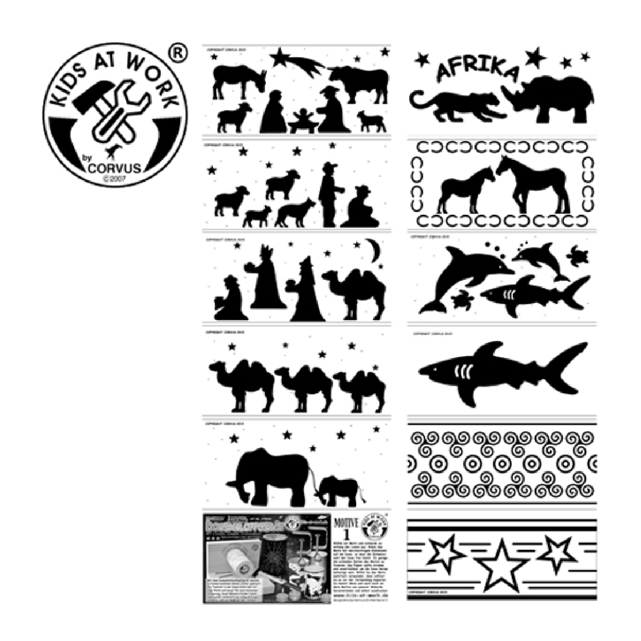 A csomagban 5 ív található, mindeegyik íven 11 különböző téma. A papírokat a jelölések mentén kell szétvágni, azután konzervdoboz mécsesek oldalára lehet ragasztani. A sablonok szerint szeggel kilyukasztgatni a konzervdobozt. A dobozba helyezett mécses fénye átvilágit a lyukakon és kirajzolja a mintázatot. Nagyon meghitt ez a hangulatvilágítás.