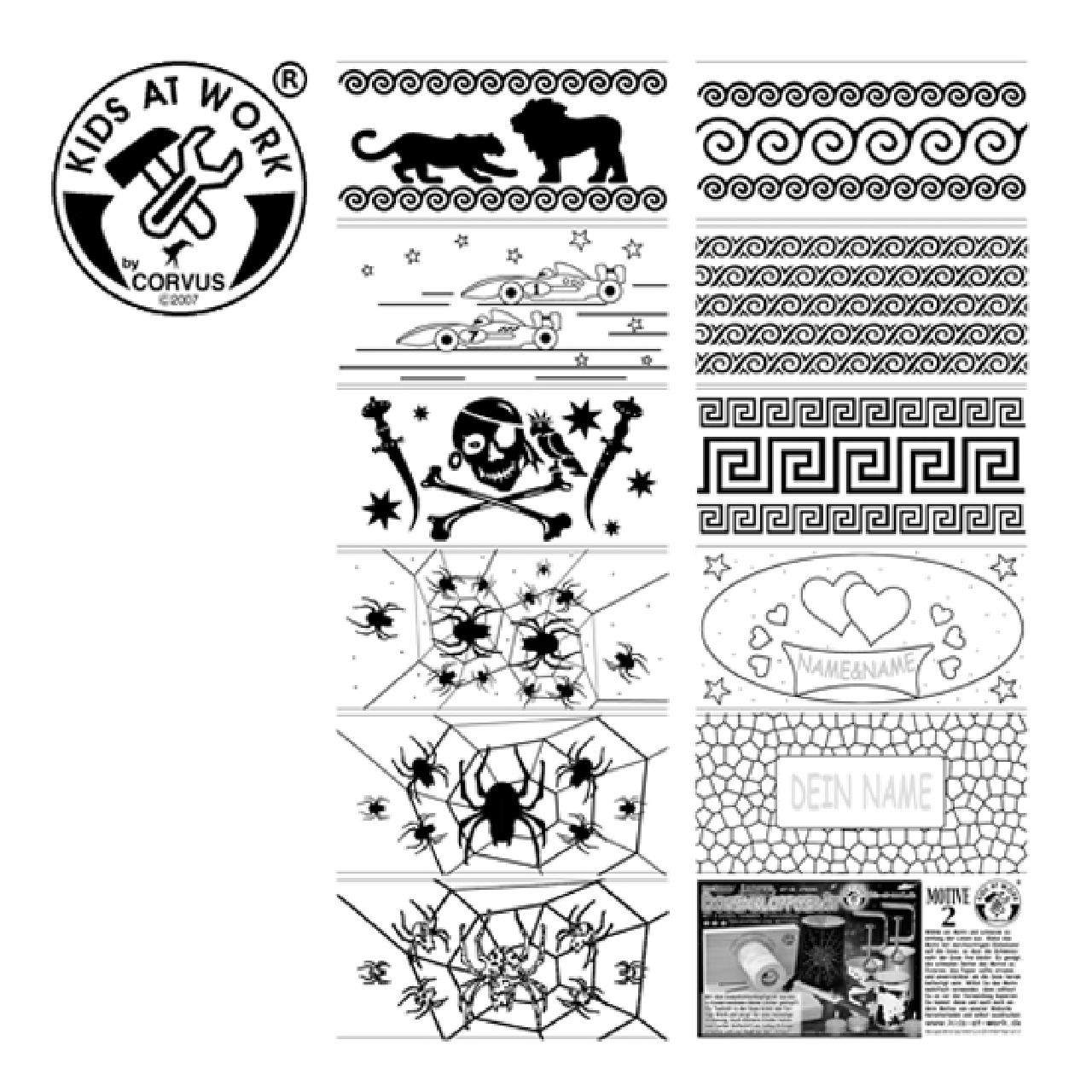 A csomagban 5 ív található, mindeegyik íven 11 különböző téma. A papírokat a jelölések mentén kell szétvágni, azután konzervdoboz mécsesek oldalára lehet ragasztani. A sablonok szerint szeggel kilyukasztgatni a konzervdobozt. A dobozba helyezett mécses fénye átvilágit a lyukakon és kirajzolja a mintázatot. Nagyon meghitt ez a hangulatvilágítás.