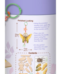 A mellékelt fa eszközzel vidd fel a színes matricákat a megfelelő elemekre, majd szereld össze a bogaras charm-ot a készletben található fonalak és kapcsok segítségével.