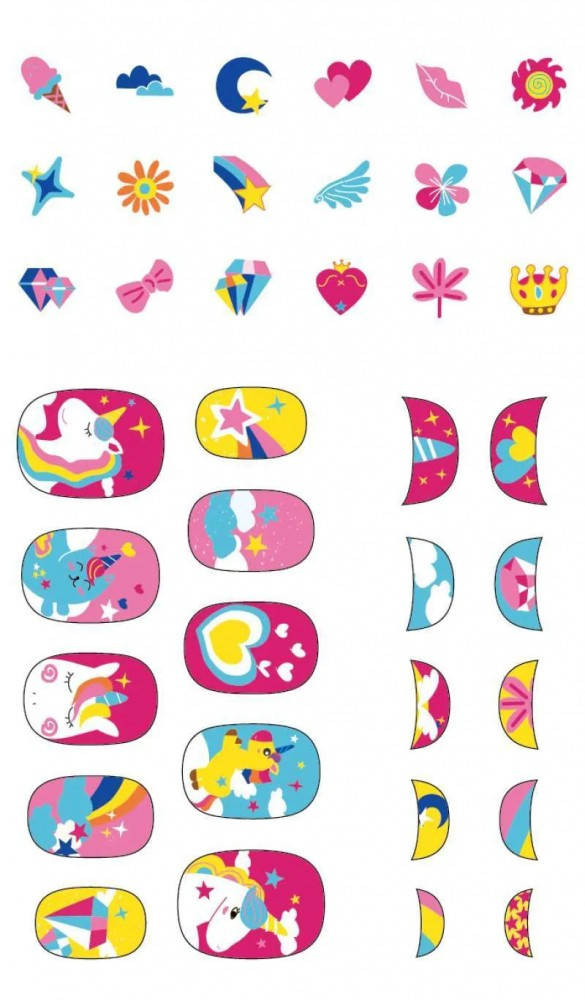 Előbb-utóbb minden kislánynál elérkezik a pillanat, amikor ki szeretné kipróbálni anya körömlakkjait. A felnőtt körömlakkok használata nem ajánlott a gyerekeknél, ezért is remek megoldás ez a körömmatrica csomag, melynek felragasztása nagyon egyszerű és villámgyors, így nem kell a festékkel az apró körmökön ügyetlenkedni. A kicsik pedig garantáltan elégedettek lesznek a látvánnyal!