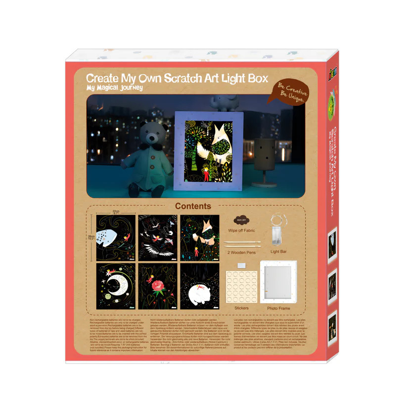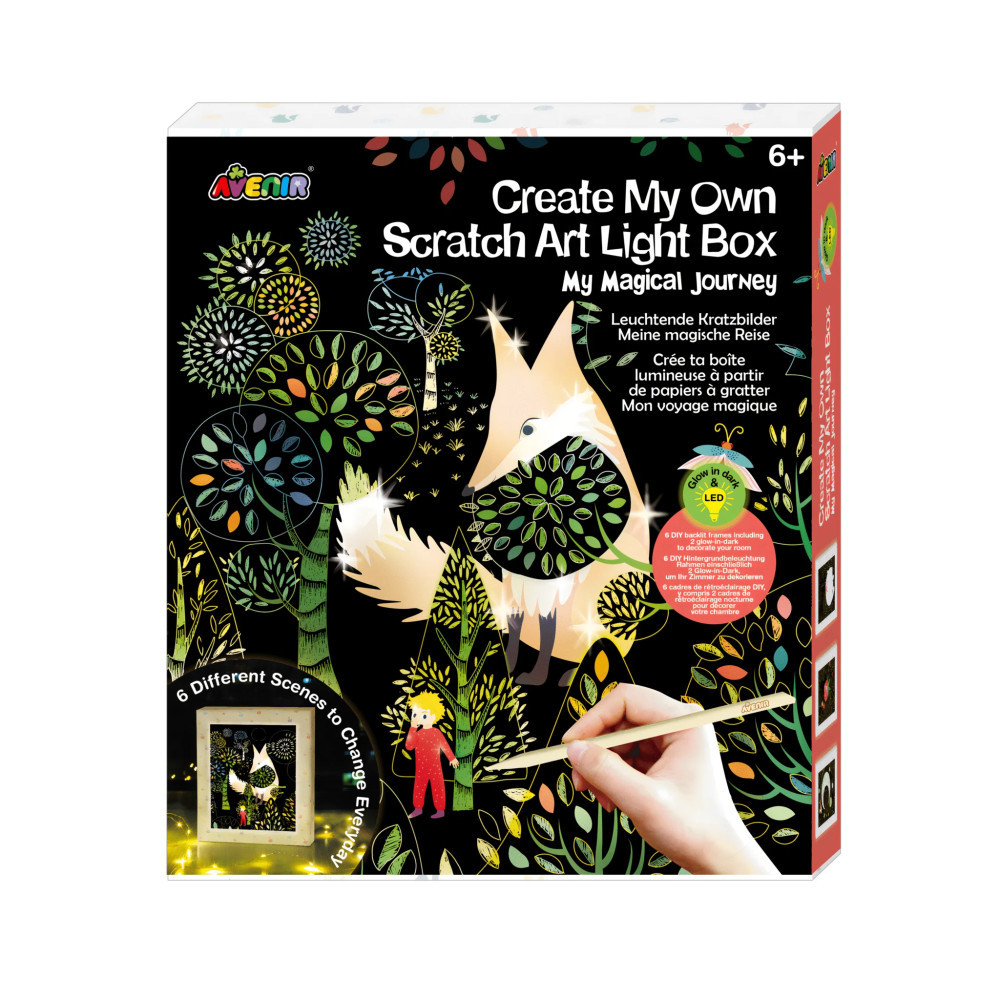 Te is szereted a fénylő égősorokat, a világító képeket és a hangulatvilágítást a szobádban? Akkor ezt a kreatív játékot neked találták ki, hiszen a csomagban található eszközök segítségével és a különleges karckép technikával egyedi és csodaszép dekorációt készíthetsz magadnak! A dobozban 6 darab karckép közül választhatod ki, melyiket szeretnéd kidekorálni és a mellékelt keretbe helyezni, hogy azután a LED fénysort is beillesztve megvilágíthasd. Különleges éjjeli fény, amelyet mindenki megcsodál majd és kellemes hangulatot teremt a szobádban!