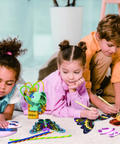 20 gyerkőc számára elegndő alapanyagot tartalmazó kreatív játékkészlet, amiben rengeteg karcolható lap, valamint zsenília rudak és karceszközök találhatók.