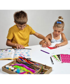 Tartalma: zseníliafonalak, fa gyöngyök, papír, matricák, felragasztható mozgó szemek, pomponok, fapálcikák és més sok-sok kreatív alapanyag.