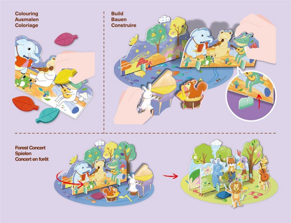 Az erdei koncert téma megismerteti a gyerekekkel a különböző hangszereket, valamint számos állatot is bemutat. Mindez az Avenir-től megszokott kedves grafikával megrajzolva és csodaszép dobozba csomagolva.