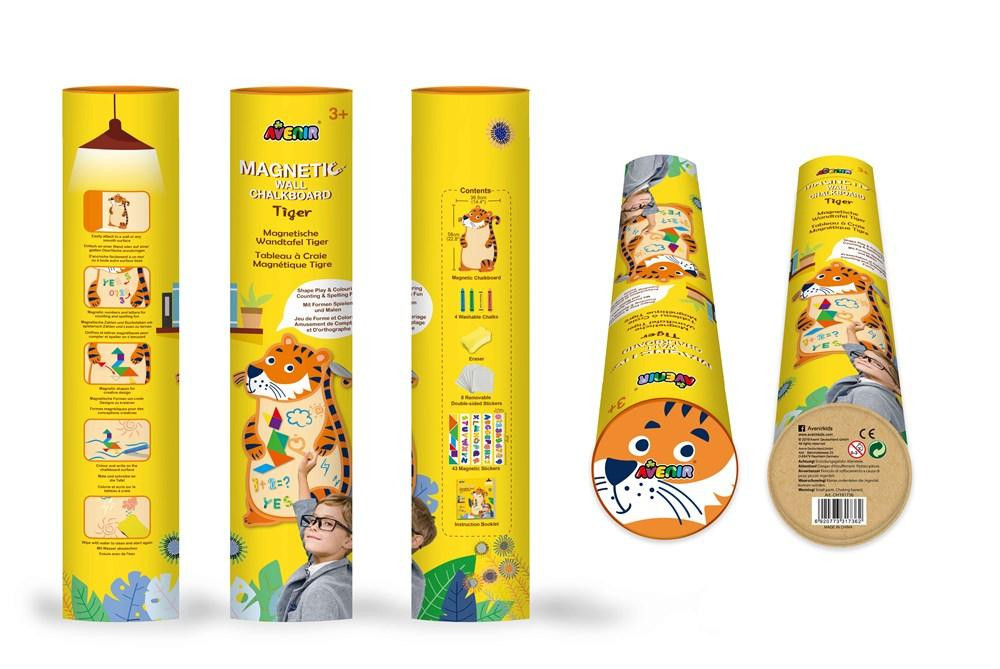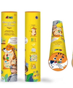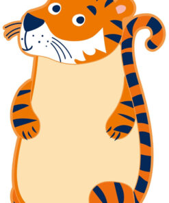 Ez a mágneses tábla készlet tartalmaz egy 58 cm x 36,5 cm méretű, tigris formájú mágneses táblát, 4 db letörölhető krétát, 1 kréta radírt, 43 db mágnest és 8 db kétoldalú ragasztót a falhoz történő könnyű rögzítéshez.
