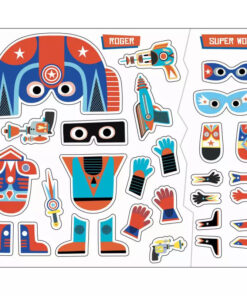 A csomag 6 db hátteret és 200 db áthelyezhető, újra felhasználható szuperhősös matricát tartalmaz, mellyel a gyerekek jól szórakozhatnak, miközben történeteket kreálhatnak.