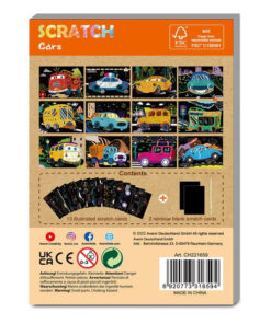 Egyedülálló kreatív technika, melynek lényege, hogy a sötét papírlapokat megkarcolva vibráló színek jelennek meg, ez adja ki a formákat és a mintákat. A karceszköz minden egyes mozdulattal eltávolít a fekete festékrétegből és feltárja a színes képet. Remek készlet a rajzolás fejlesztésére és a képzelet kibontakoztatására!