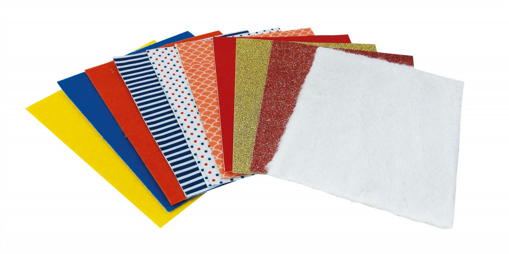 Tartalma 10 féle öntapadós anyag: szőrme, csillogó textil, műbőr, nyomott mintás pamut, filc.
