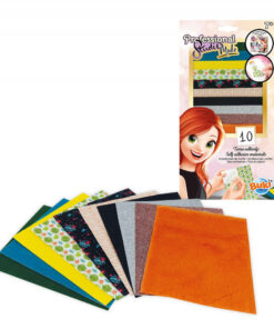 Öntapadós anyagok a Buki Professzionális divattervező készletének újratöltéséhez! Tartalma 10 féle öntapadós anyag: szőrme, csillogó textil, műbőr, nyomott mintás pamut, filc.