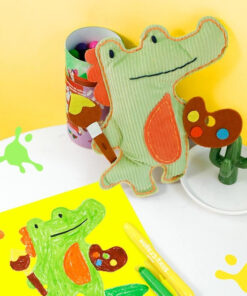 Ez a gyönyörű festőművész krokodil lehet alvásra és ölelésre alkalmas plüssjáték vagy akár öltözködési kiegészítőként is funkcionálhat.