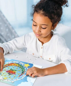 Óvatosan tekerd fel a színes fonalakat a megfelelő szegek köré és díszítsd a képeket polifoam matricákkal! A műanyag szegek éles hegyek nélkül illeszkednek a táblába.
