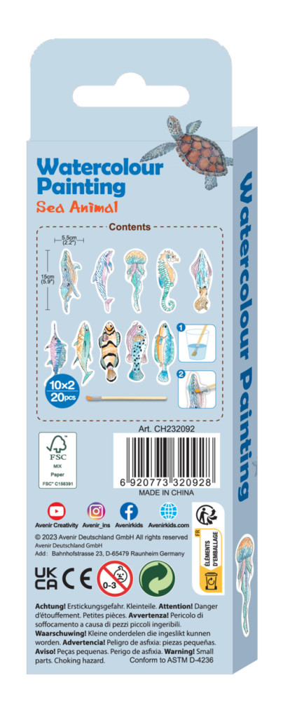 Vízzel festő kreatív könyvjelző készlet, Tengeri állatok Avenir