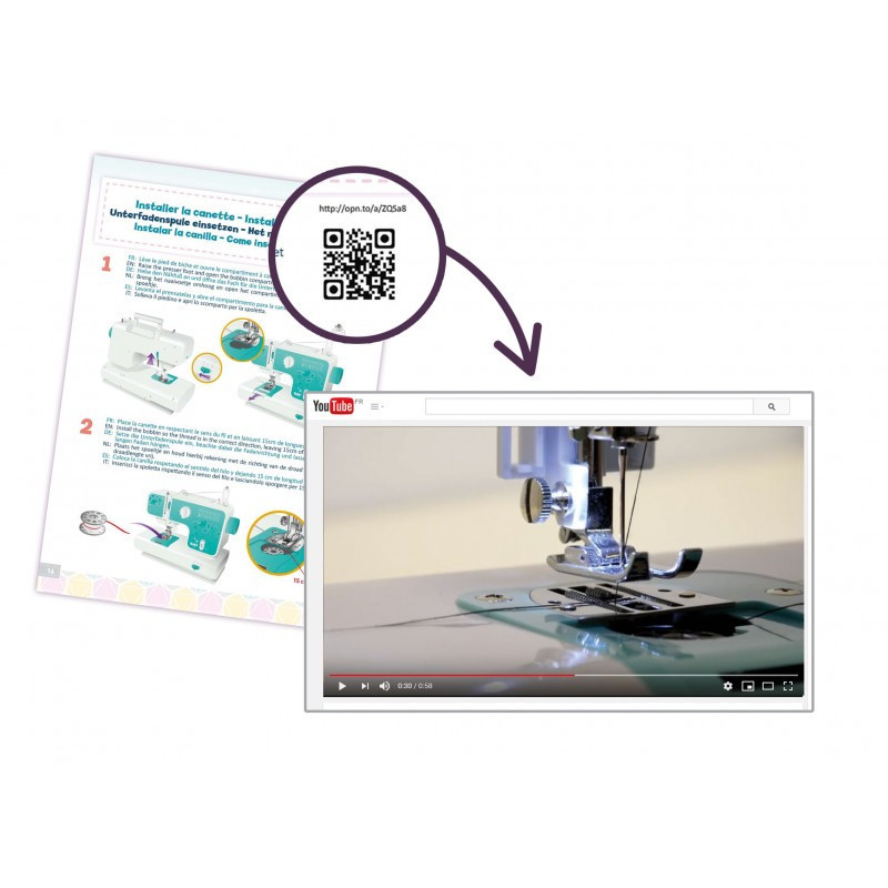 Egy varrógép, amely segít megtanulni a varrás alapjait, és amellyel 6 divatos tárgyat is elkészíthetsz: egy könyvjelzőt, egy kulcstartót, egy tárolókosarat, egy erszényt, egy pénztárcát és egy tűpárnát!