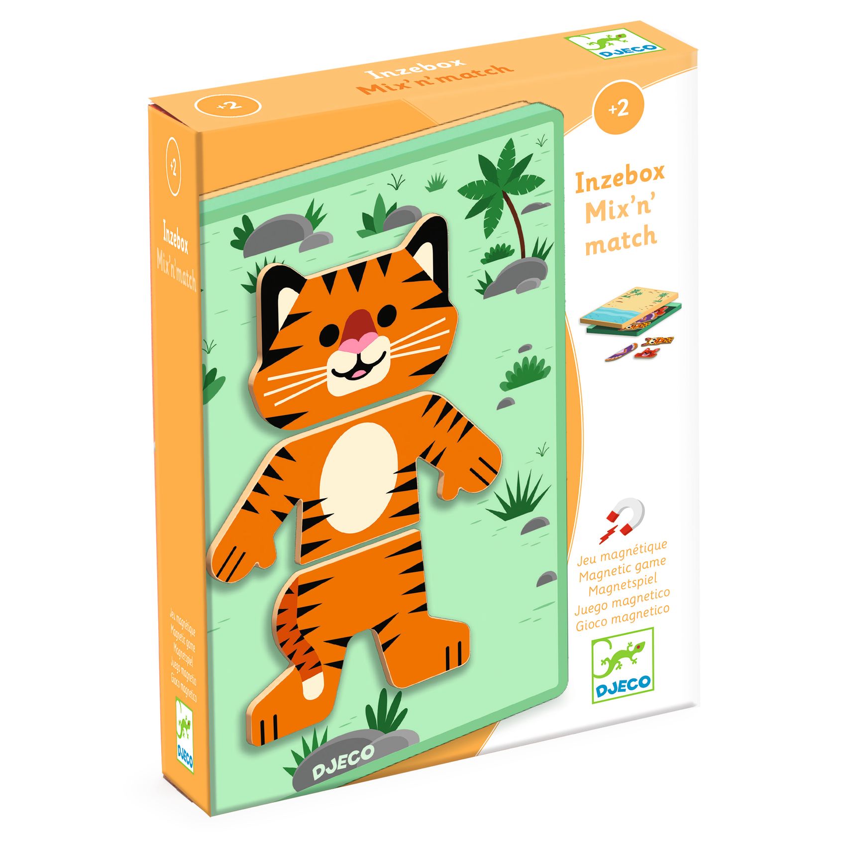 A Mix’n’match az új Inzebox sorozat tagjaként egy izgalmas mágneses képkirakó különleges fémdobozban. A fémdoboz két része alaplapként is szolgál a játék folyamán. A játékos kiveszi a mágneses fapuzzle részeket a dobozból és indulhat is a móka! 8 állat részei találhatók a készletben: pl. zsiráf, elefánt, tigris, panda, koala…A részeket összeillesztve kell megalkotni az alaplapon az állatképeket. Ám ez a játék nem ismer határokat…ki mondta, hogy ebben a világban nincsenek tigrisfejű pandák? Egy elefánt lábú, zsiráf fejű koala? Ki látott már ilyent? Ebben a játékban minden előfordulhat, kezdődhet az alkotó kavarás vagy a kavarodó alkotás!