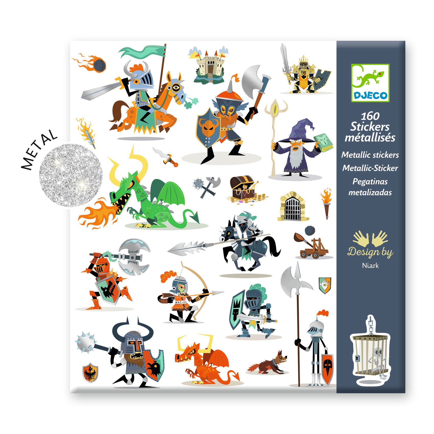 <p style="text-align: justify;">Ez a csomag 160 színes lovagi témájú matricát tartalmaz: a tüzet okádó sárkány mellett lovagló elszánt lovag, félelmetes nyílzápor és élesebbnél élesebb kardok, bátor harcosok, rettentő bestiák és még sok más lovagi témájú kép található a 4 matricaíven. A gyerekek szabadon ragaszthatják fel a sok izgalmas matricát különböző fantáziadús jelenetekhez, vagy egyszerűen csak kedvenc tárgyaik díszítéséhez. A csomagban 2 x 2 ív matrica található, 2-2 íven ugyanaz az összeállítás, tehát minden matricából 2 db van. </p>