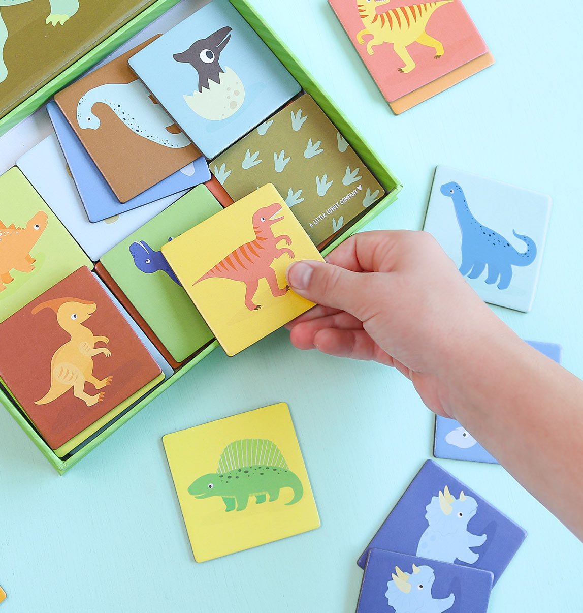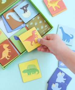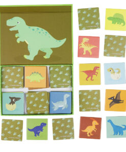 30 darabos memóriajáték dinoszaurusz mintával. A 15 képpárból álló készlet vastag kartonból készült – ideális a kis kezeknek. A játék jó minőségű kartondobozban van.