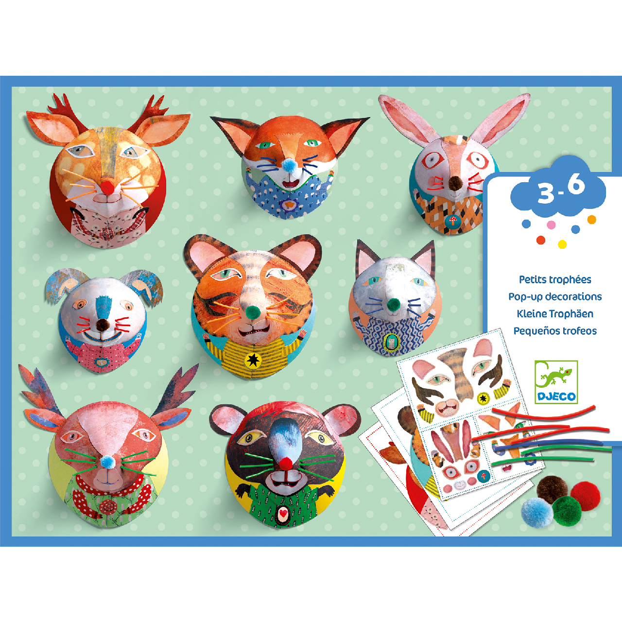Nagyon kedves állatokkal díszítheted a szobácskádat. A már nyomtatott kiterített állatokat előszőr pattintsd ki a lapból. Akaszd össze a két vágott végét, hogy tölcsért formázzon! A matricák, drótok és pomponok felhasználásával alakítsd ki az állataid arcát! Akaszd fel a falra! Ezeket a kedves díszeket te alkottad meg. Büszke lehetsz a trófeáidra!