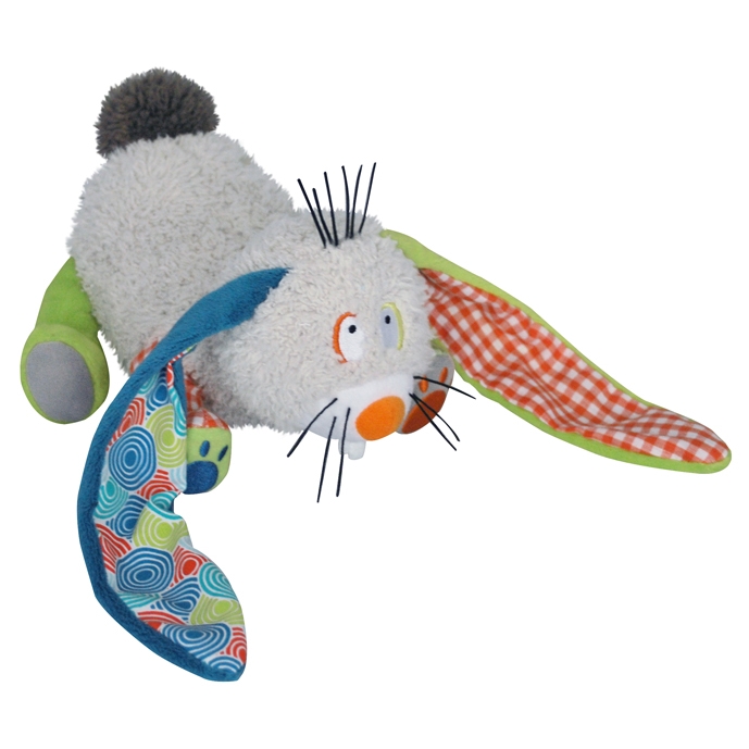 Babakocsira és kiságyra is akasztható. De puha anyaga lehetővé teszi, hogy a baba mellé tegyük, kezébe adjuk.