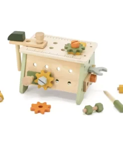 A gyerekek különféle eszközöket fedezhetnek fel, és fejleszthetik az esztergálási, ütési és illesztési készségeket. A munkapad megfordítható, és dobozzá válik a szerszámok tárolására és szállítására. A barkácsolás elősegíti a kézi készségek fejlesztését, felkelti a gyermek érdeklődését, és serkenti a képzeletet