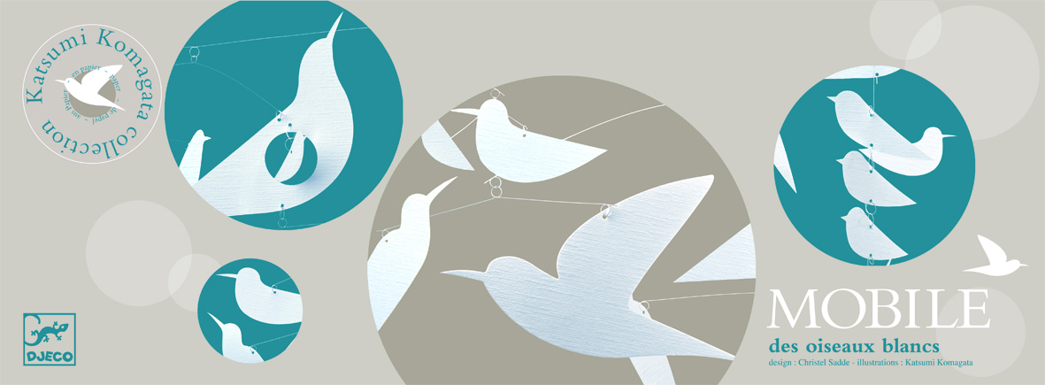 A japán grafikusművész Katsumi Komagata alkotása a Djeco Little Big room dekorációi közül. Előre összeszerelt szín és forma kavalkád, különleges papírelemekből lévő függődísz, szélmobil, szoba dekoráció.