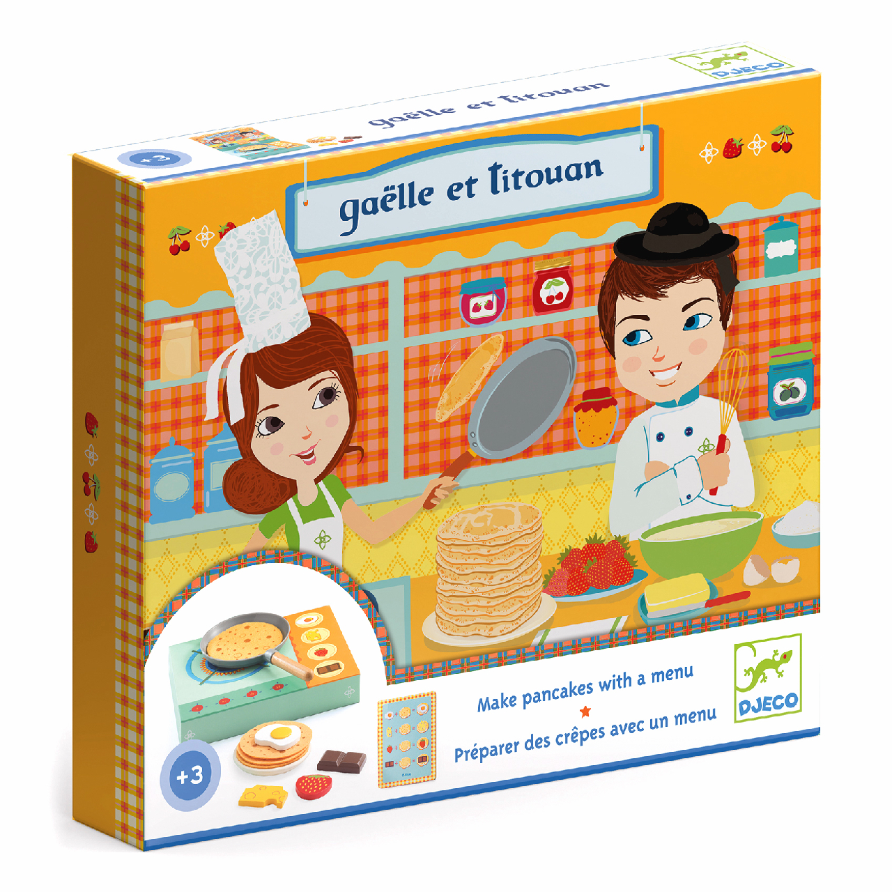A készlet dobozában minden szükséges megtalálható az édes, vagy sós palacsinta készítéséhez. A fadoboz tárolóként és megfordítva tűzhelyként szolgál. A palacsinta tészta és a töltelékek különböző anyagokból készültek, fa, filc, műanyag, attól függően, hogy mi a szerepe a kiegészítőnek a játékban, pontosabban a palacsintában.