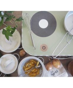 Szórakoztató konyhai játékkészlet kis szakácsok számára szépen csomagolva egy elegáns bőröndbe. A bőrönd megfordítható és főzőlapként használható. A játékkészlet 13 darabot tartalmaz, és biztosan órákig szórakoztatja majd a kicsiket. Ezzel a készlettel a kis séfnek mindene megvan ahhoz, hogy bármilyen ételt megfőzhessen. Az eszközök ugyanolyan jól működnek egy igazi konyhában is, mint a játékkonyha kiegészítőiként. Az elemek kézzel moshatók!