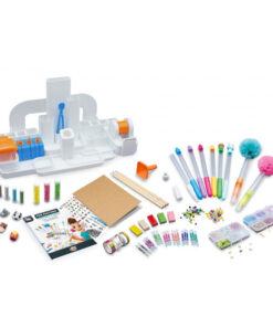 A praktikus kialakítású munkapad segítségével tollakat és egyéb írószereket készíthetsz el saját tetszésedre szabva. Helyezd bele a mellékelt tölcsért az egyik tollba és töltsd meg az általad választott dekorációval. Díszítsd a ceruzákat matricákkal és készíts radírokat. Szabd személyre a mellékelt füzetet a maszkolószalag segítségével. Ezután használd az állomás rendszerezésére az elkészült írószereket!