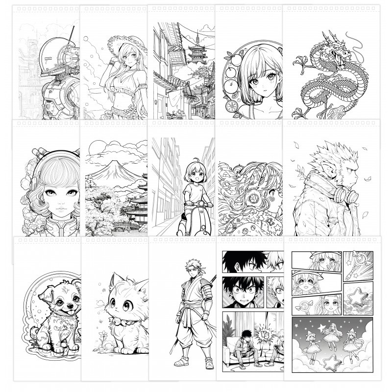 – egy A5-ös méretű színezőfüzet 25 kivehető ívvel (15 előre megrajzolt lap és 10 üres lap)