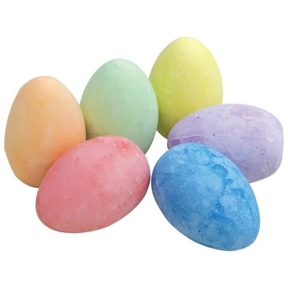 Kerek kréták jumbo méretben, válogatott színekben: sárga, zöld, piros, kék, narancssárga és lila. Minden csomag 6 darab tojás alakú krétát tartalmaz. A kréták alacsony maradéktartalmú kalcium-szulfátból készültek, pormentesek. Ideális íráshoz, rajzoláshoz és színezéshez táblákon és járdákon.