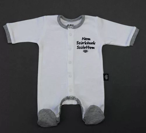 Praktikus és kényelmes viselet ez a nagyon vagány “Nem Szürkének Születtem” mintával nyomott baba rugdalózó. Elöl patentos megoldás, mely megkönnyíti a peluscserét és az öltöztetést. Az egyik legjobb megoldás különösen újszülötteknél és az első néhány hónapban. Minőségi, 100% pamut bababarát anyagból készült, ami jól mosható, könnyen kezelhető.