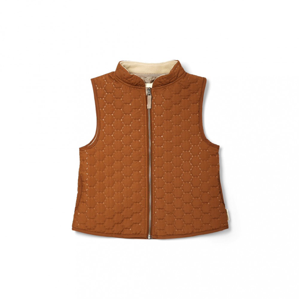 Bájos karamell színben pompázó NUUROO termo gyerek mellény, mely az újrahasznosított poliészter anyagának köszönhetően környezetbarát választás. A kényelmes és praktikus kialakítású mellényt zsebek és cipzár teszi még hasznosabbá. Ideális választás a szabadtéri játékhoz, pulóver alá vagy esőkabát felett hordva. Minőségét az OEKOTEX® tanúsítvány bizonyítja, amely a 100-1 szabvány szerinti ellenőrzésen esett át. Kiváló minőségű, kényelmes és stílusos választás a hidegebb napokra!