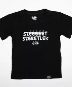 Az Ön gyermekének garantáltan tetszeni fog ez a rövid ujjú póló, amelyen “Szééééét Szeretlek” minta díszeleg. A póló nem csak kényelmes viselet a mindennapokban, de a Drk mintának köszönhetően a játékra is inspirál. A minőségi magyar termék garantáltan ellenáll az aktív gyermekjátéknak, és hosszú időn keresztül megőrzi szépségét és kényelmét. A póló magyar termék, így biztos lehet benne, hogy gyermekének bőrével érintkező anyag kiváló minőségű és bőrbarát.