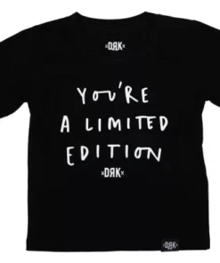 Az Ön gyermekének garantáltan tetszeni fog ez a rövid ujjú póló, amelyen “You’re a limited edition” minta díszeleg. A póló nem csak kényelmes viselet a mindennapokban, de a Drk mintának köszönhetően a játékra is inspirál. A minőségi magyar termék garantáltan ellenáll az aktív gyermekjátéknak, és hosszú időn keresztül megőrzi szépségét és kényelmét. A póló magyar termék, így biztos lehet benne, hogy gyermekének bőrével érintkező anyag kiváló minőségű és bőrbarát.