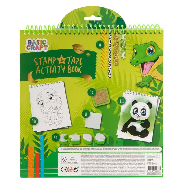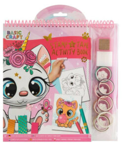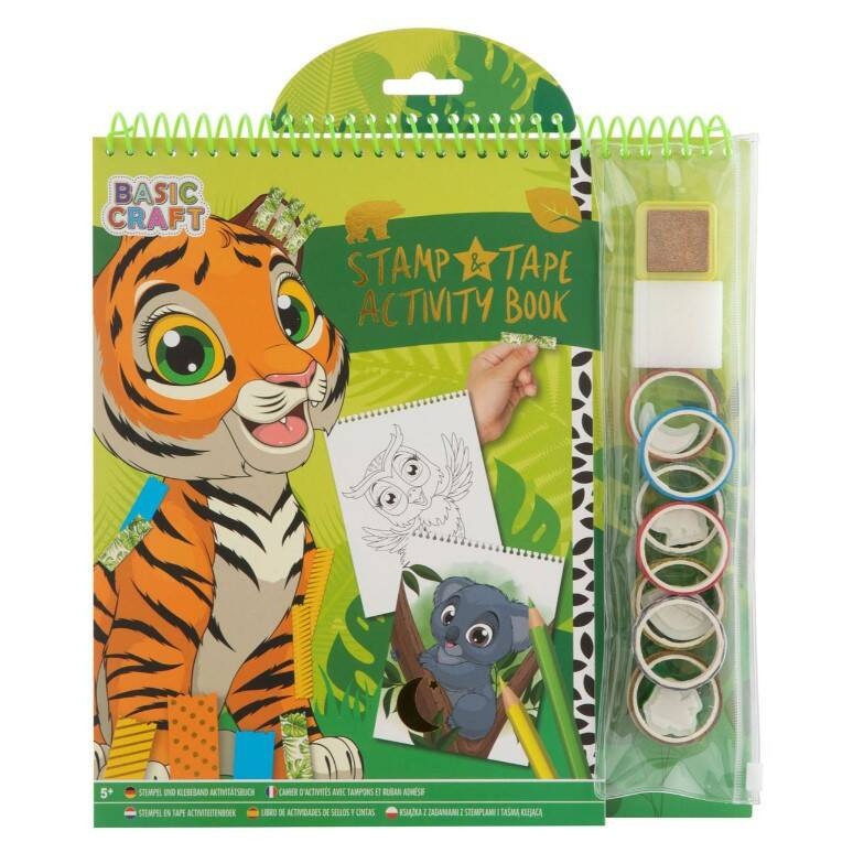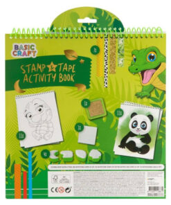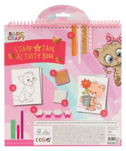A kifestőkönyv minden oldalán gyönyörű képek vannak, a színes szalag és a bélyegzők segítségével pedig a gyerekek alkotásai tovább díszíthetők.