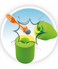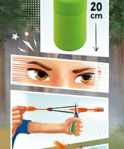 A csomagban található nyilak segítségével egy előre beállított habszivacs palackot (20 cm magas) is megcélozhatsz, amely ha ügyes vagy, ketté válik, amikor eltalálod!