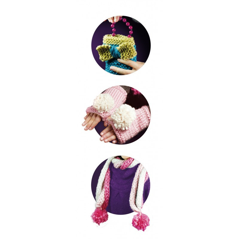 Tanulj kötni egy sálat, egy kézi táskát és ujjatlan kesztyűt! Sajátítsd el három lépésben az ujjkötés tudományát, a tűkkel történő kötést és a színek megváltoztatását, valamint a kötést harisnyaöltés segítségével.