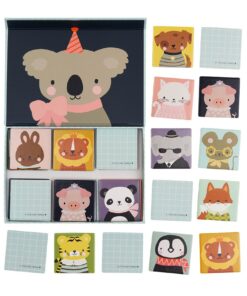 A doboz tartalma: 30 db kártya, 15 különböző állati barátok mintával