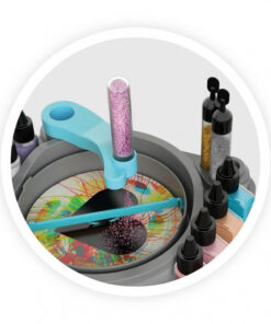 A képek elkészítéséhez csillámport is használhatsz! A tálca a könnyű tisztítás érdekében kivehető. A készlet tartalmaz 3 extra üres flakont, hogy saját színkeverékeket készíthess és két képkeretet a műalkotások kiállításához!