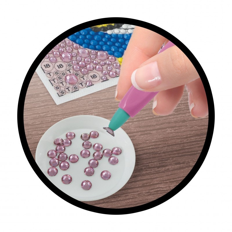 Keresd meg a megfelelő számokat és betűket, amelyek segítik az öntapadós strasszok táblán való elhelyezését! A dobozban található ceruza segítségével, ami segít felvenni a strasszokat, könnyedén elkészítheted a képet.