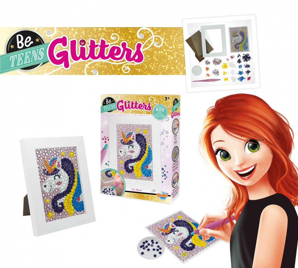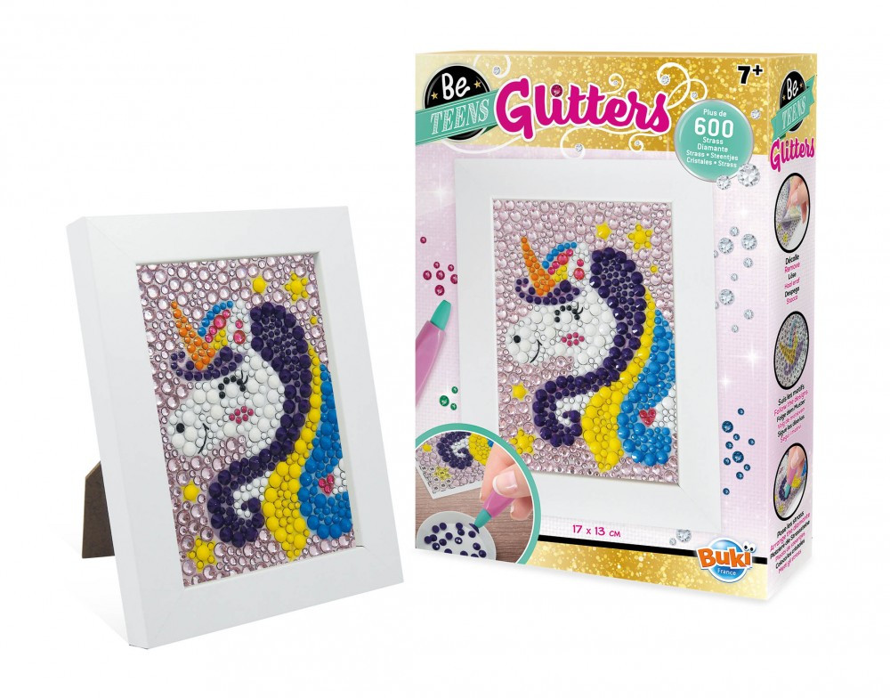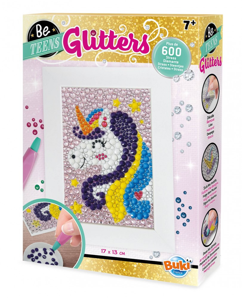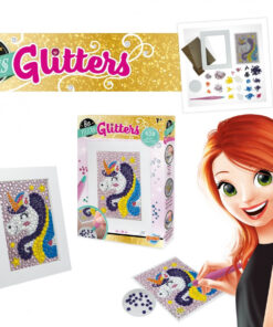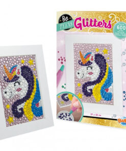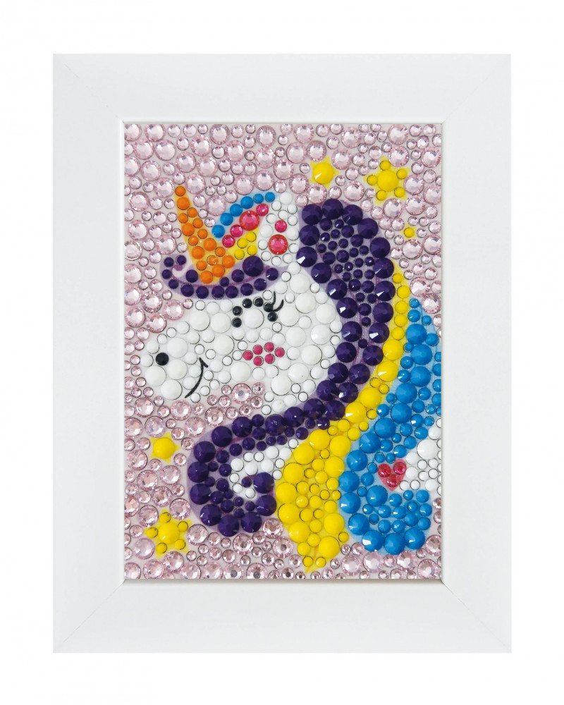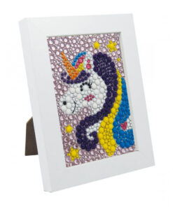 Készíts csodálatos csillámos unikornist! Tapaszd a gyöngyöket a képen a megfelelő helyre, majd helyezd bele a fa képtartóba.